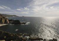 A beautiful day for coastal exploration in California, USA, complete with ocean, headland, sea, shore, cliff, promontory, terrain, cloud, cape, and contrails.