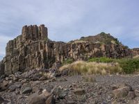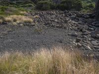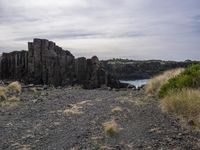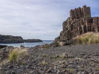 Scenic view of a coastal landscape with sandy beach, mountains in the background, and the sparkling blue ocean. The rugged terrain, lush vegetation, and beautiful bedrock formations make it an ideal spot for nature lovers and outdoor enthusiasts.