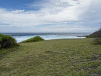 Scenic view of the Sapphire Coast, Bournda Headland, with lush vegetation, azure ocean water, and cumulus clouds on a gloomy day