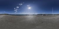 A scenic coastal landscape featuring open space, water, and an asphalt road under a clear sky.