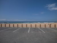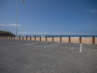 Scenic view of a coastal landscape with an asphalt road and parking lot.