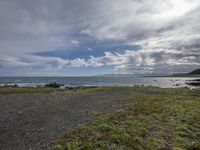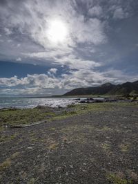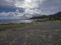Coastal Landscape with Sandy Beach and Mountain View
