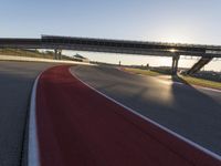 A winding coastal road curves and runs along a blue horizon, passing by a sea of grass and under a clear sky with the sun shining down on the asphalt. Automobiles and airplanes take advantage of the infrastructure and transport options available in this stunning landscape.