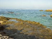A beautiful landscape featuring a combination of coastal features including a headland, a cliff, a rock wall, a promontory, and an outcrop, with the sun visible and a clear sky. The beach, sea, and lake provide a stunning backdrop to the picturesque mountain and river below. The fault, wadi, and glacial formations create an interesting terrain.