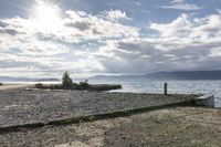A stunning coastal view in New Zealand, showcasing the low shoreline, clear blue water, and beautiful landscape.