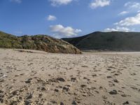A sunny day in Portugal shows a beautiful landscape of sand, water, tree, vegetation, and open space at the shore of the ocean. The clear sky and azure water form a horizon, with a mountain and cumulus cloud in the background, and a road surface on the beach. The sun is visible, highlighting the highland, plain, water resources, and terrain of the natural environment.