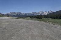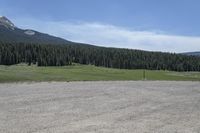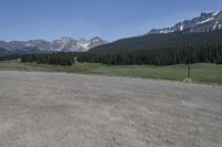 Scenic view of the Colorado landscape with beautiful mountains, expansive open spaces, and lush green forests. This serene natural environment in the USA offers a picturesque scene with clear skies, grassy plains, and winding roads leading through the wilderness. The mountain range in the distance adds to the charm of this peaceful setting near Telluride.