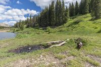 Scenic view of the Colorado mountains and forest during the day, showcasing the natural beauty and open spaces of this highland region with abundant vegetation and wilderness. The clouds reflect on the picturesque Clinton Reservoir, a recreational water resource surrounded by a diverse biome. The park's reservoir bank and grass surface create a perfect setting for outdoor activities, while a tree-lined river and tarn add to the serenity of this green mountain range.