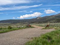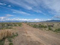 In the heart of rural Colorado, a straight road cuts through the open landscape. The gravel surface leads the way, surrounded by the natural beauty of the USA. Clouds dot the sky overhead as the road winds its way through the countryside. The dirt and sand streets blend seamlessly with the surrounding environment, creating a peaceful and serene atmosphere. Take a journey down this road and immerse yourself in the beauty of nature and the simplicity of rural life.