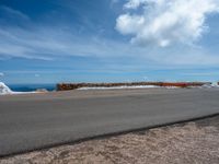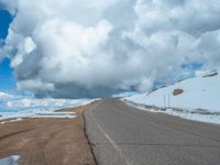 Nestled in the stunning landscape of Colorado, the road to Pikes Peak summit offers a breathtaking journey through snow-covered terrain. The asphalt road winds its way up, flanked by picturesque clouds and nature at every turn. As you ascend one quarter of the way, the profile of the mountain reveals its majestic beauty against the day sky. Experience the serene and awe-inspiring scenery of Pikes Peak summit in the heart of the USA.