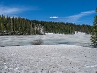 In the heart of Colorado, a scenic road winds through a winter wonderland. The snow-covered landscape stretches as far as the eye can see, with a serene lake reflecting the surrounding nature. The open space and clear blue skies create a peaceful atmosphere, perfect for a leisurely drive or a winter hike. The road, smoothly paved with asphalt, leads adventurers through this picturesque scenery, with snow-capped mountains and fluffy clouds adding to the breathtaking beauty of the USA's natural landscape.