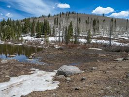 In the beautiful landscape of Colorado, a road stretches into the distance, covered in a blanket of snow. The clear blue skies and fluffy clouds add to the serene winter scene. The road, made of smooth asphalt, leads the way through the snowy landscape, surrounded by nature's beauty. This scenic view captures the essence of Colorado's winter wonderland.