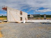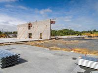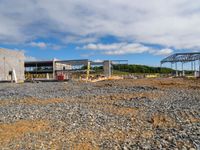 A view of a construction site with clouds in the sky during the day in a city.