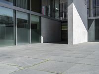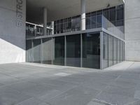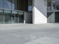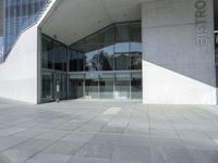 An expansive glass and metal facade of a corporate headquarters building in Berlin, Germany, with reflective white tiles, aluminium structural elements, and a cement paver road surface illuminated by natural light.