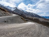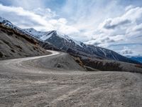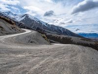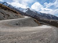 A profile view of a gravel road winding through the mountains of New Zealand on a sunny day.