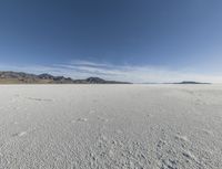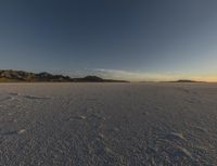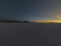 A peaceful atmosphere is created from the combination of the Utah desert, a clear sky, and the salt lake surface. The horizon is illuminated by the sun, creating a beautiful contrast with the dark night sky. The clouds, ocean, and shoreline add to the natural environment, creating a calming evening atmosphere.