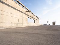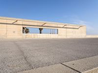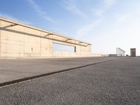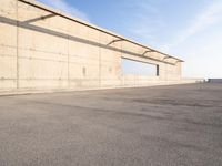 A picturesque view of Barcelona at dawn, with low coastal buildings and a concrete pier extending into the ocean.