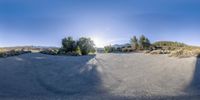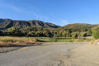 A tranquil dawn scene in Ojai, California, USA, showcasing the vast open space, low mountains, and clear sky.