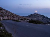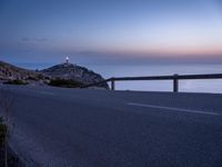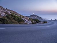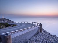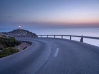 A winding coastal road overlooking an Armco barrier against the clear sky of Mallorca, Balearic Islands, Spain. The landscape offers an ocean view with a lighthouse in the backdrop, capturing the essence of nature in the European country.