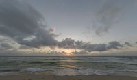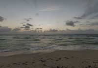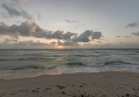 The sun rises over the open space of Miami Beach, USA, as the coastal waters of the Atlantic Ocean stretch out in the distance.