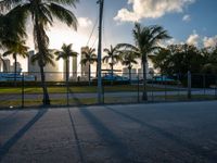 The sun can be seen breaking the day over the pier in Miami Beach, Florida, USA. The coastal skyline is visible with the wood floor of the jetty and the ocean water in the background.