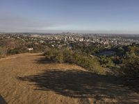 An aerial view of the Los Angeles cityscape at break of day, with its mix of modern architecture, skyscrapers, residential areas, open space, hills, and mountains. California, USA.
