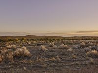A stunning sunrise over the rugged and vast Mundi Mundi Plains in New South Wales, Australia. The horizon stretches out as far as the eye can see, with a clear sky and open space. The golden light of the breaking day illuminates the desert landscape, showcasing the beauty of the plain's dirt and gravel surface.