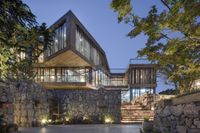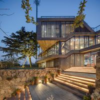 A beautiful sunrise illuminates a suburban villa in Chongqing, China, surrounded by nature and clear skies.