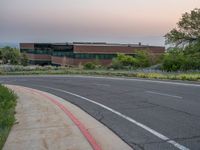 A one quarter view of the modern architecture and asphalt road in Salt Lake City, Utah, USA at break of day with a clear sky.