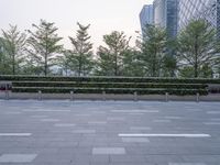 The modern architecture of the Shenzhen business district in Guangdong, China is illuminated by the morning sun. Human settlement and modern infrastructure, including high-rise office buildings, residential areas, public spaces, plazas, parks, and curbs, are seen in this hinterhof snapshot of urban design.