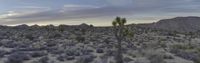 A dramatic sunrise in the wild California desert brings out the beauty of the rugged chaparral landscape of Yucca Valley. The open space and natural environment, with its vegetation, sand, and mountain landforms, is part of a national park and a perfect recreational spot for anyone looking to connect with nature.