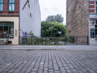 The cobble stone road of a residential area in Berlin, Germany, stands in profile against the classic urban architecture of the city, offering a glimpse of life in Europe's bustling urban center.