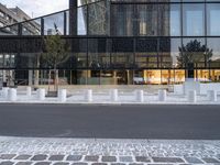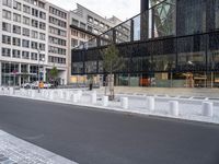 The sun rises over the city of Berlin, Germany, illuminating the modern architecture, glass walls, and high-rises of its financial district. Automobiles, trees, and vegetation line the asphalt roads and concrete sidewalks, providing a glimpse into the urban design and metropolitan area of the city.