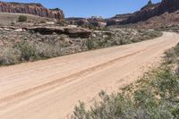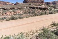 A scenic view of the red rock desert landscape in Utah, USA, showcasing the rugged mountains, sandy roads, and wild nature of this beautiful state park.