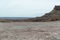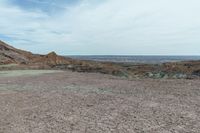 A winding dirt road through Canyonlands National Park in Utah, USA. The vast desert landscape is dotted with red rock formations, mountain escarpments, and grassy, sandy wadis.