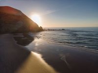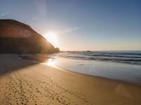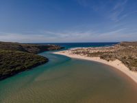Experience the breathtaking coastal beauty of Portugal from an elevated perspective. Aerial views reveal expansive beaches, the clear ocean, and vast open spaces under a sunny sky. Contrails occasionally trace the clear atmosphere, enhancing the vibrant landscape. Whether it's the golden sand meeting the blue water or the sun casting its glow, Portugal's coastline offers a stunning European getaway.