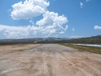 In the open spaces of rural Utah, the landscape is characterized by rugged mountains and vast gravel and dirt areas. The natural beauty of the area is enhanced by the presence of clouds in the clear blue sky. The surface of the land varies from sandy patches to rocky terrain, providing a diverse and breathtaking scenery. This is a perfect destination for nature enthusiasts and adventurers seeking to explore the untouched beauty of the American Southwest.