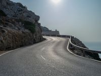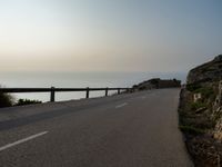 Experience the breathtaking beauty of Majorca in the Balearic Islands at the break of day. As the sun rises over the ocean, the clear sky casts a golden glow on the asphalt roads that trace the coastline. This serene landscape, with its natural charm and Armco barriers lining the way, invites you to explore Spain's sunny side. The interplay of sunshine and water creates a captivating scene, perfect for a morning road trip through Europe.