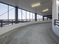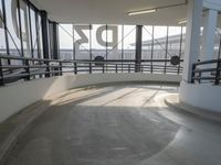 A vehicle travels down a highway ramp, offering a view of the urban landscape of Berlin, Germany, including the concrete and steel architectural facades of corporate headquarters and warehouses.