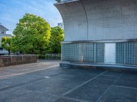 A cloud-filled sky illuminates the cityscape of Tokyo, Japan at the break of day, casting a hard shadow on the urban design and open space of a nearby stadium.