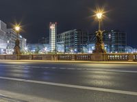 The classic architecture of Berlin, Germany is illuminated by artificial light, creating an urban atmosphere at midnight in this metropolitan area of Europe.