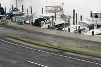 An elevated road with asphalt surface in a busy city, showing vehicles and boats on the road and waterway.