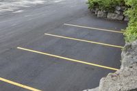 An elevated road with yellow high lines and asphalt surface in Toronto, Ontario, Canada.