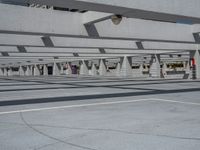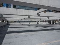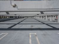 A top-down view of Miami Beach, USA reveals the urban design of the city, with its open spaces, concrete surfaces, and parking lots casting hard shadows in the bright day.