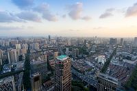 A stunning cityscape of Shanghai, China, showcasing its modern architecture and urban skyline from an elevated position on a clear day.