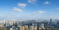 Daytime cityscape of Shanghai, China showcasing its high-rise buildings and urban skyline with a cloud-filled sky in the background. This elevated perspective provides an overview of the city's impressive architecture and bustling municipality, highlighting its modernity within the Asian continent.