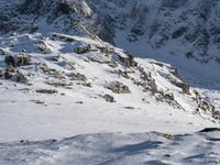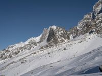 A view of the majestic Mont Blanc and Aiguille du Midi in the French Alps on a clear winter day, with the snow-covered landscape and open space providing a stunning elevated view of nature in Europe.