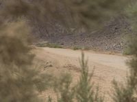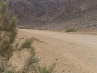 An open road stretches endlessly through the vast desert landscape of South Africa, surrounded by sand dunes and mountain formations.