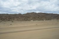 A mesmerizing view of an endless road cutting through the vast African desert landscape with mountains in the distance.