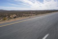 A scenic view of an endless road stretching through the South African landscape, surrounded by mountains and vegetation under a clear sky.